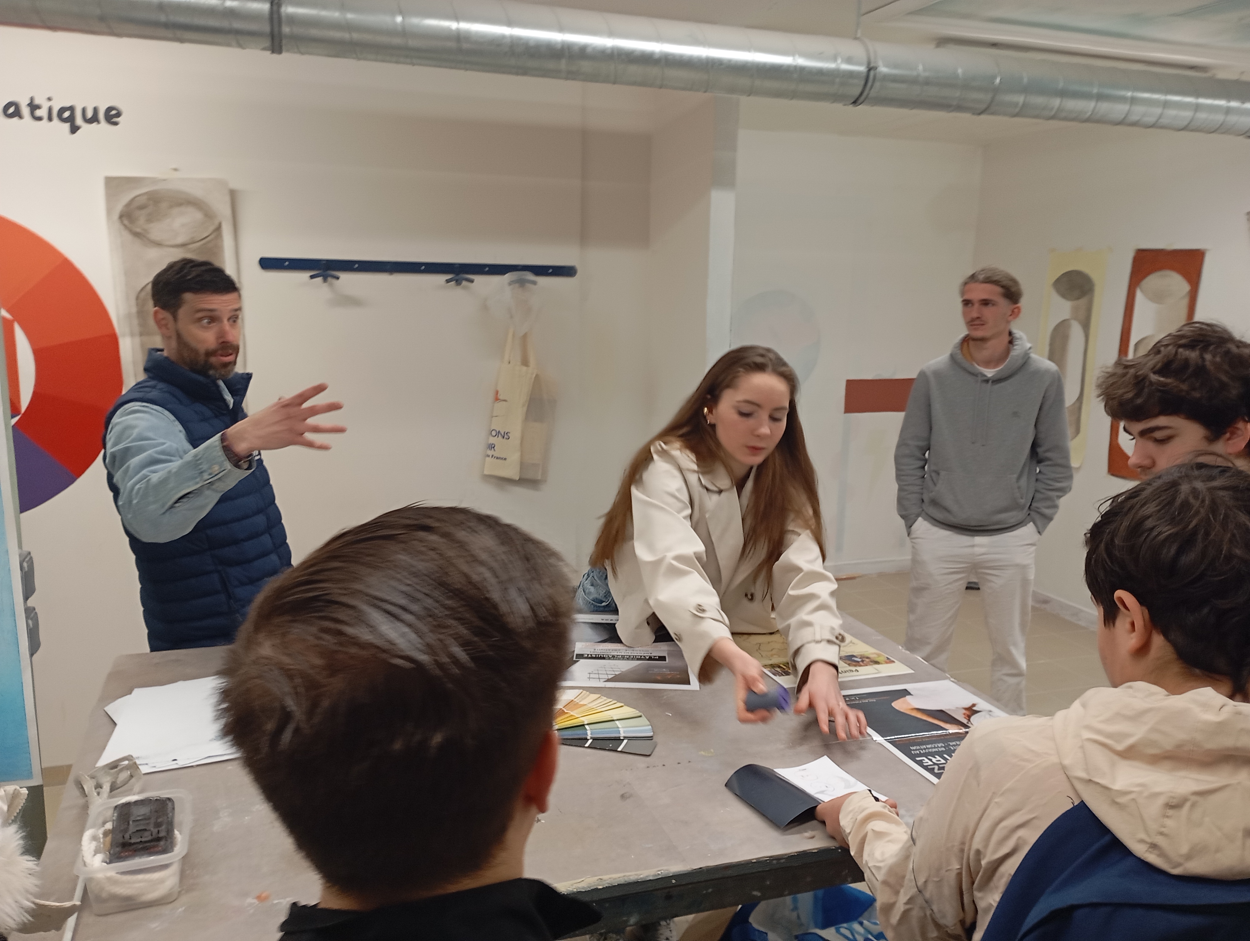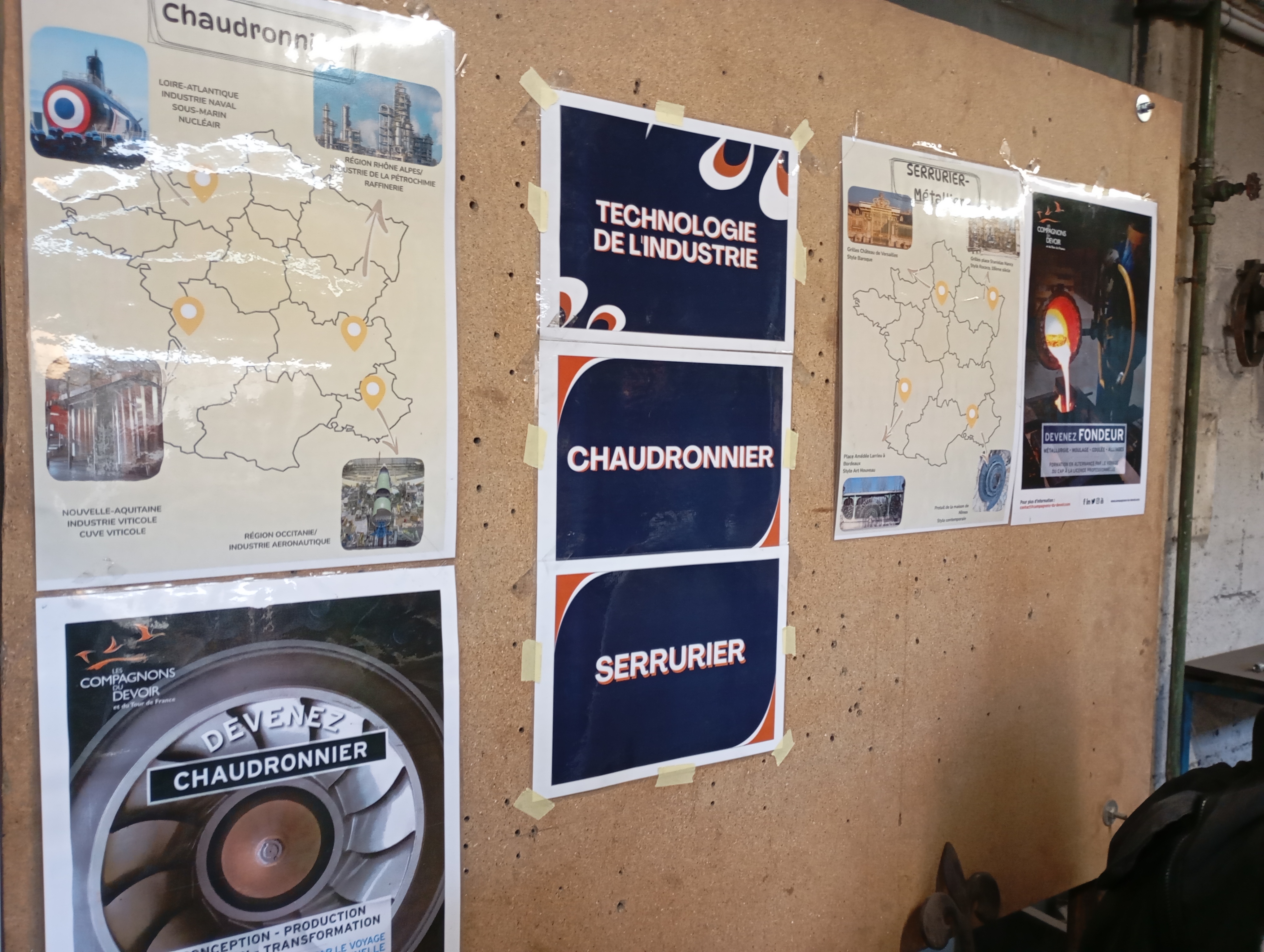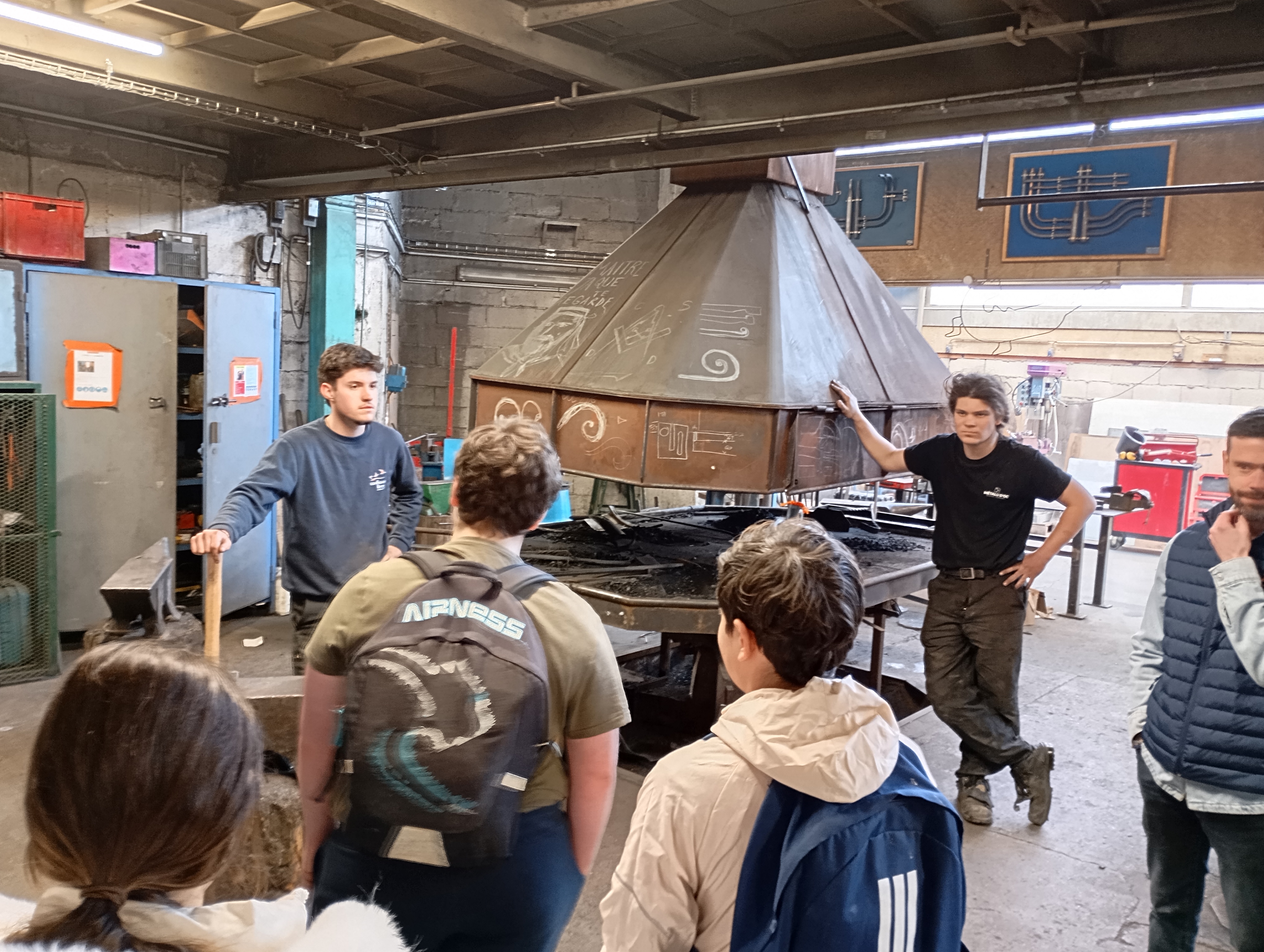 Pendant la visite des ateliers présentés par de jeunes apprentis, les élèves ont découvert les nombreuses formations possibles à Nîmes, telles tailleur de pierre, boulangerie, pâtisserie, fonderie, chaudronnerie, ébénisterie, charpentier, couverture, peinture et revêtement, plomberie,...