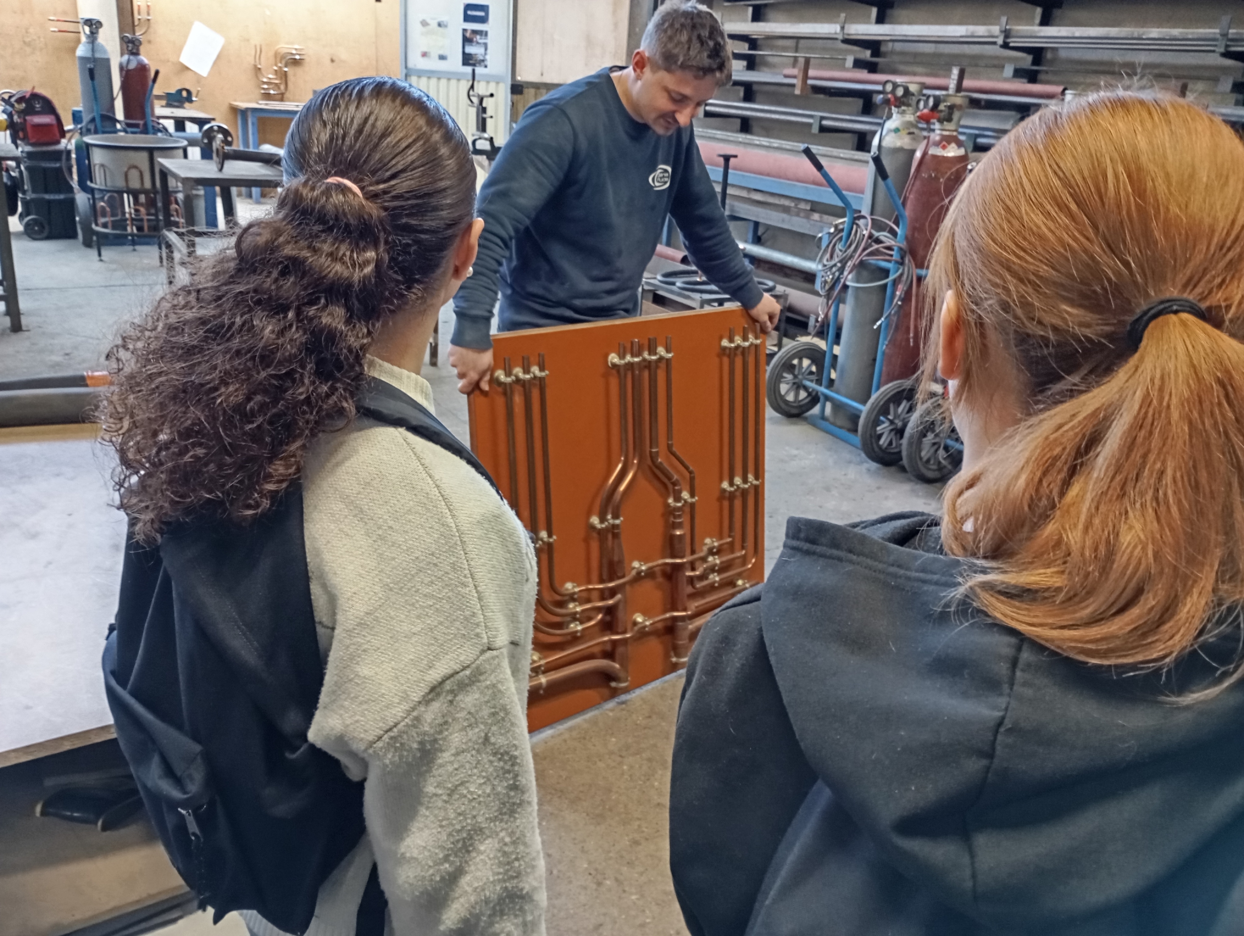 À l'occasion de leurs Journées Portes Ouvertes pour les scolaires, les Compagnons du Devoir ont accueilli des élèves de 4ème et 3ème du collège Jules Verne accompagnés de leurs professeures Mmes Caron Gimond et Mora.