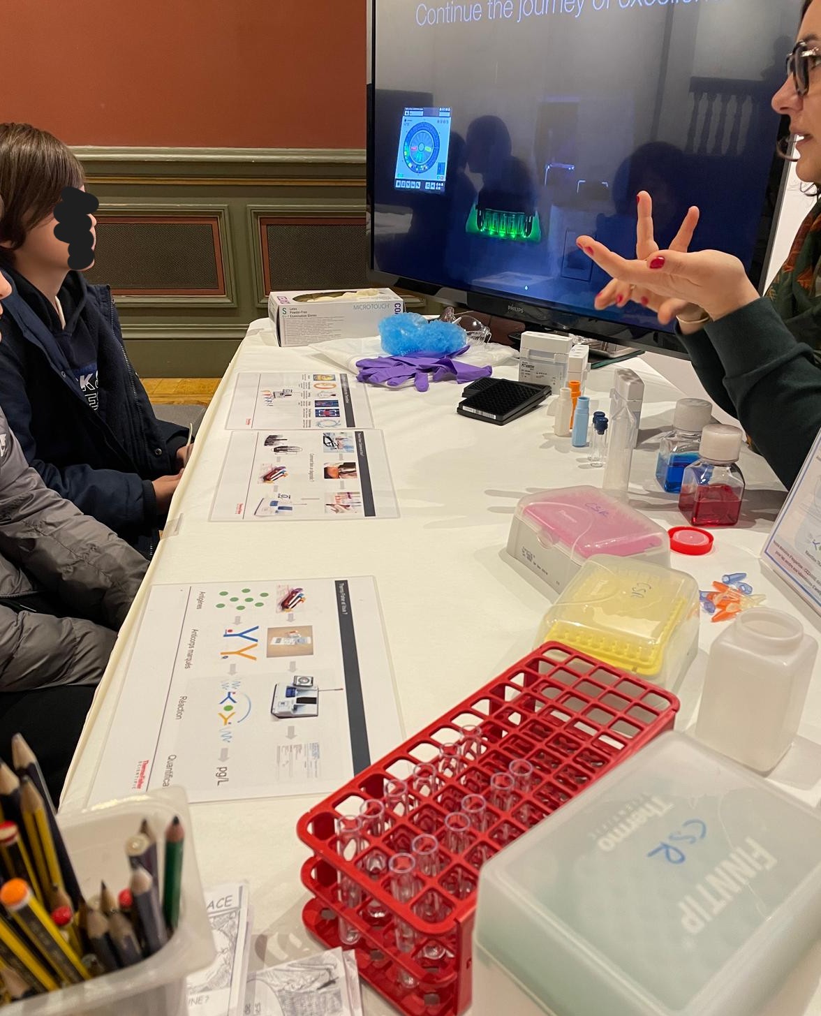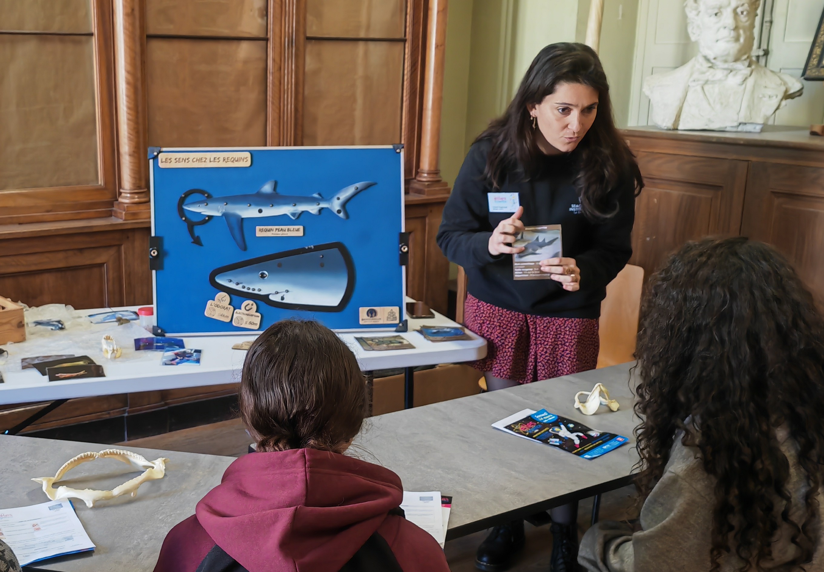 Le jeudi, deux classes de 6° sont allés à la rencontre de chercheuses : au cours d'un face-à-face, ils ont découvert leur métier et ont pu poser toutes leurs questions sur la biologie marine, l'écologie, la physique des matériaux, les analyses médicales ou l'archéologie. Les élèves ont même eu l'occasion de manipuler du matériel et mieux comprendre leur recherche grâce à des modèles : échantillons, pipettes, squelettes, outils, expériences !