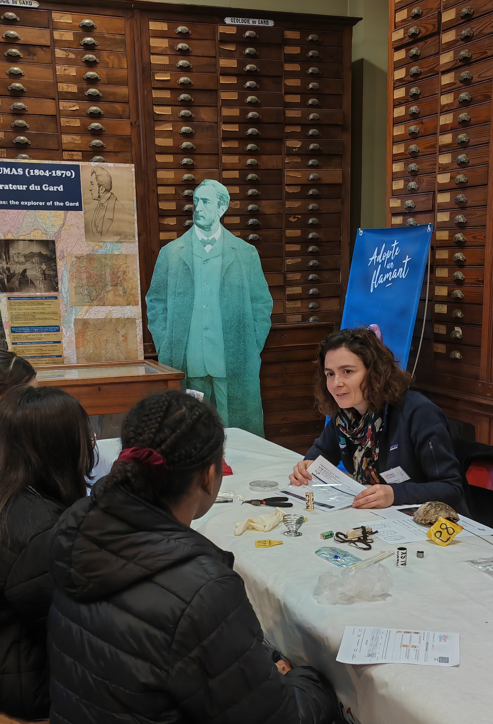 Le vendredi, ce sont une cinquantaine de filles de 5ème et de 4ème qui ont été accueillies au Muséum. A la manière d'un speed-dating, elles ont rencontré 3 femmes scientifiques et ont pu découvrir leur métier avant d'aller visiter les salles de zoologie, de géologie et de préhistoire avec les explications des médiateurs du musée.